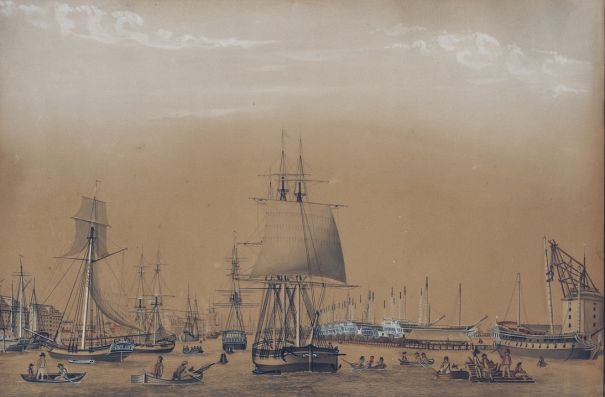 Københavns havn ca. 1790. Gouache, Søfartsmuseet, Ill. Fra bogen. Danmark var ikke nogen ’Lilleput nation’, når man ser på flådens størrelse og slagkraft.
