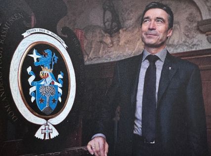 Ved afskedsaudiensen hos Hendes Majestæt Dronning Margrethe den 5. april 2009 modtog han Storkorset af Dannebrogordenen. Ifølge Dannebrogordenens statutter er storkorsriddere forpligtede til at få fremstillet et våbenskjold til ophængning i Frederiksborg Slotskirke. Foghs våbenskjold blev tegnet af kongelig våbenmaler Ronny Andersen, og dette blev ophængt i november 2009