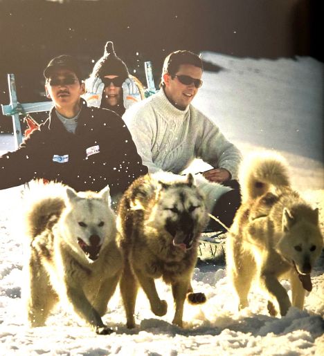 Frederik viser i 2004 sine evner som hundeslædefører, da han inviterer sin hustru på hendes første slædetur på den grønlandske ø Disko.