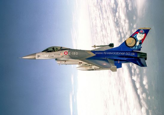 F-16 med bemaling i forbindelse med flyvestationens 50-års jubilæum
