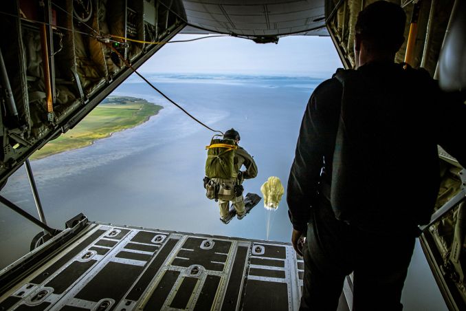 Faldskærmsudpringer fra en Hercules. Antagelig en jæger fra Jægerkorpset