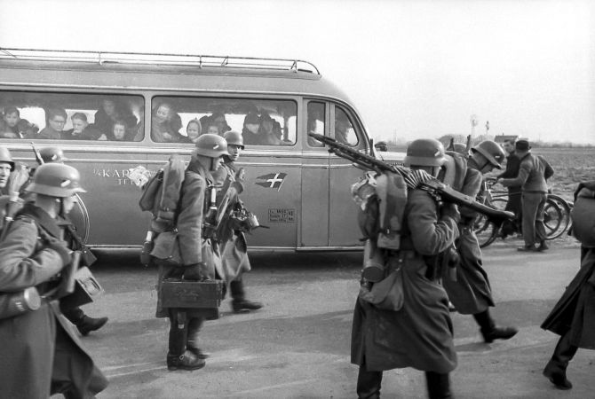 Tyske tropper på vej fra lufthavnen mod Aalborg 9. april 1940
