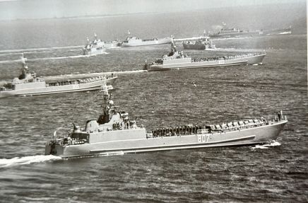 Landgangsfartøjer af Pólnocny-klassen fra den polske flådes 131. Landgangsbrigade. Op gennem 1970’erne havde den polske flåde støt udbygget og moderniseret sin landgangskapacitet. Den polske flåde kunne i midten af 1970’erne landsætte 3.500 soldater i første landgangsbølge. (Foto: Privatsamling Admiral Jerzy Lenda)