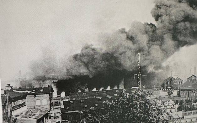 Sabotageaktionen mod DISA 22. juni 1944. Aktionen blev genneført uden nogen kom alvorligt til skade. (Foto: Frihedsmuseet)