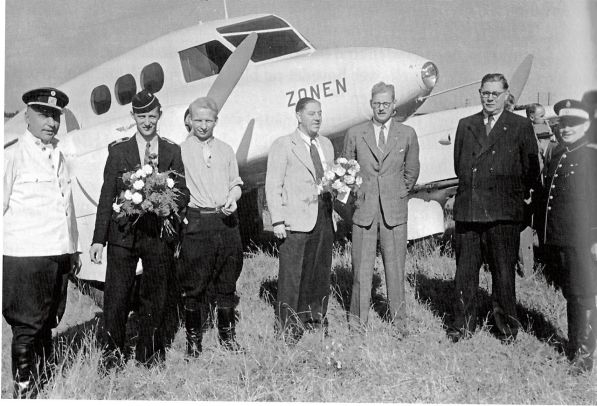 Den nye danskbyggede KZ-IV ambulanceflyvemaskine kom på præsentationstur til Odense 2. august 1944