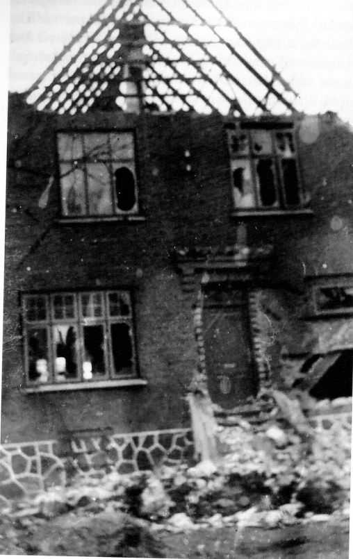 Gamtofte præstegård efter en Lancaster bombemaskine styrtede ved huset. Alle ombord blev dræbt