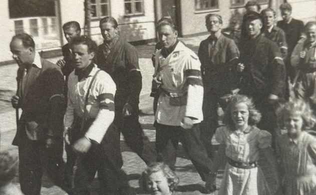 Frihedskæmpere marcherer gennem Bogense søndag den 6. maj 1945