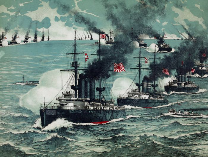 Den kejserlige flåde gik sejrrigt ud af mødet med de russiske skibe. De fortsatte med at støde frem, lavede havneblokader, så russerne ikke kunne komme ud, Og der kom ikke nye forsyninger frem. Det blev en sand katastrofe. Foto: HPN.