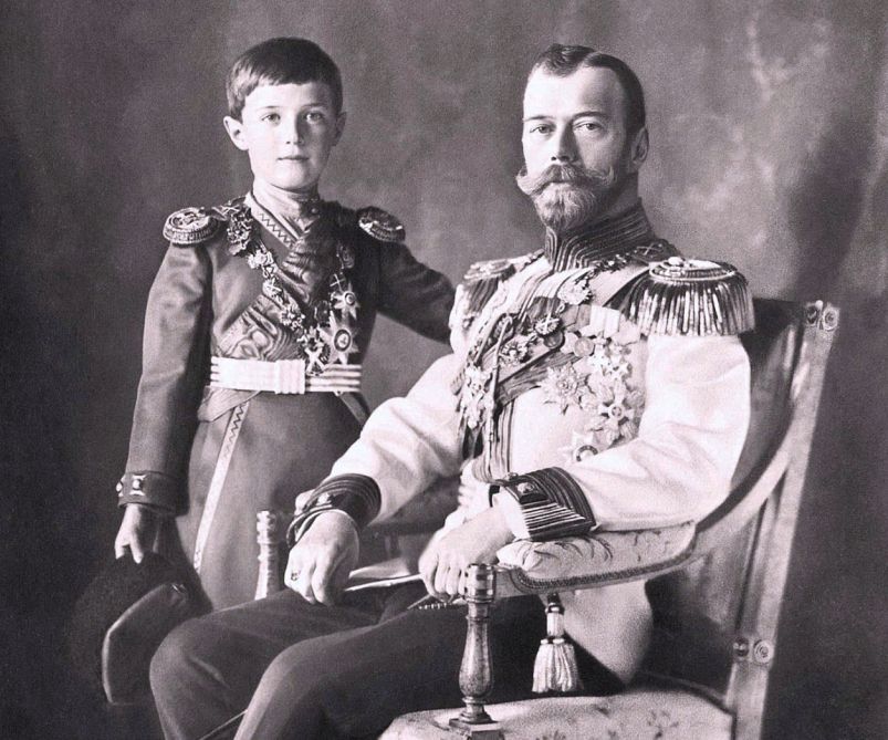 Tsar Nikolaj II med sønnen Aleksei. Denne bærer på ingen måde spor af at være syg. Men faldt han og slog sig, så fik han voldsomme smerter, og blødningerne ville ikke stoppe. Faktisk var der ikke rigtig nogen form for behandling. Før den mystiske munk Rasputin kom ind i billedet. Foto: HPN.