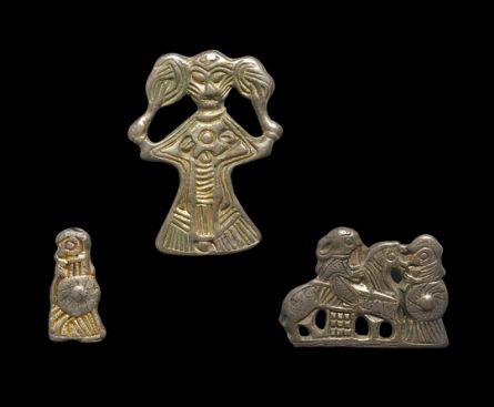 "Jeg tror ikke, at de nordiske guder blev afbilledet med karaktertræk fra de dyr, som de havde. Vi kender ikke eksempler på gengivelser af fx guden Odin med ulvehoveder, selvom han havde to ulve, og vi ser ham heller ikke afbilledet med et hestehoved efter hans hest Sleipner. Jeg tror, at smykkerne forestiller kvinder, måske vølver, som er malede i ansigtet, eller at de skærer ansigt i en form for trance" fortæller Peter Pentz.
