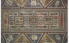 I selve spisesalen fandt man rester af smukke mosaikgulve, hvoraf det er lykkedes at restaurere en del. Blandt andet denne: