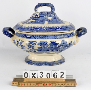 Suppeterrin fra stellet blå “Willow”, Ringkøbing-Skjern Museum