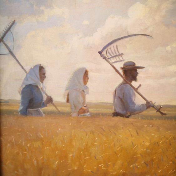 Anna Ancher har i 1901 malet dette dejlige billede af høstfolk, Fuglsang Kunstmuseum.