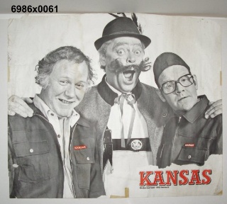 Reklame for Kansas arbejdstøj med Preben Kaas, Dirch Passer og Jørgen Ryg, Nordsjællands Museum