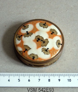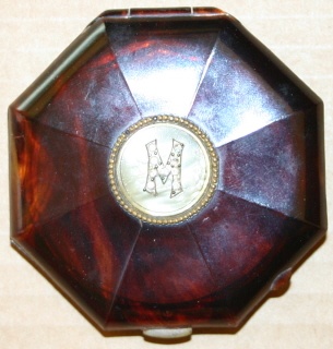 Pudderdåse i skildpaddeskjold fra 1800-årene. Låget er mærket M, som står for Miehe-Renard, idet dåsen har tilhørt en kvinde i denne cirkusslægt, Cirkusmuseet