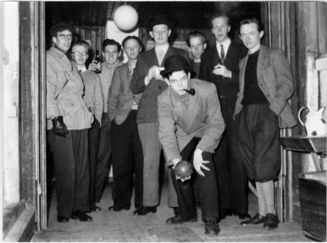 Studerende, kollegianere, 1952 optaget af keglespil på Frederik 6. kro, AU