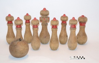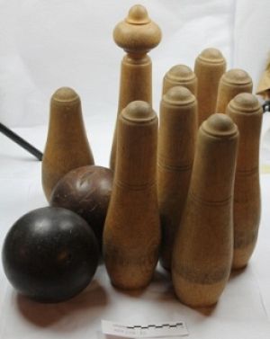 Kegler fra keglebanen på Hotel Dana i Maribo, Lolland-Falster Museum