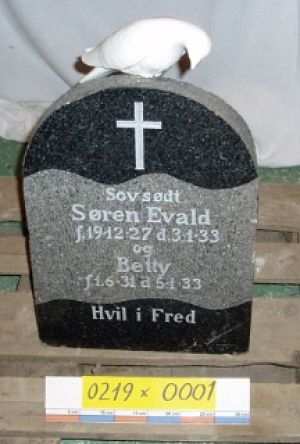 Gravsten fra 1933, Odder Museum. Fredsduen var i en lang periode en fast del af gravstens udsmykning